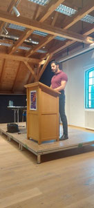 Am 28.03.2025 trat Alina für Turmgeflüster bei den Bayerischen U20-Poetry Slam-Meisterschaften in Rosenheim an. Mit ihrem überzeugenden und klaren Statement zu Diversität und Respekt vor der Individualität jedes Menschen überzeugte sie das Publikum und schaffte es ins Finale!