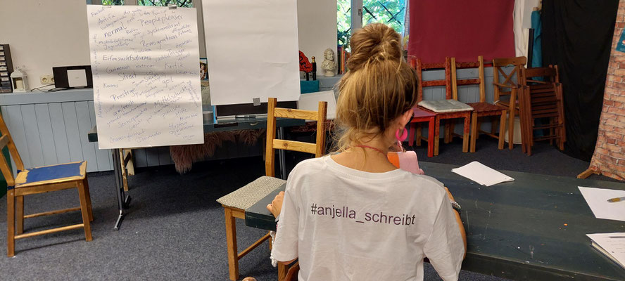 Beim Poetry Slam Workshop am 18. Mai ging es neben dem Schreiben auch um Bühnenpräsenz. Wie trete ich auf? Welche Kraft verbirgt sich hinter der Traurigkeit? Muss ich immer stark sein? Welche Emotion löst Musik aus und wie kann ich diese Emotionen in Worte fassen?
