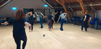 Zeit und Raum lösten sich im Saal der Aumühle auf. Intensive Bewegungserlebnisse bei einer besonderen Spielart des Tanzes. Jede Bewegung entsteht spontan im Moment und existiert nur für einen kurzen Augenblick. Rhythmus, Emotion, körperlicher Ausdruck, sinnliche Kommunikation - ganz im Hier und Jetzt sein und das tänzerische Zusammenspiel ohne Worte genießen.